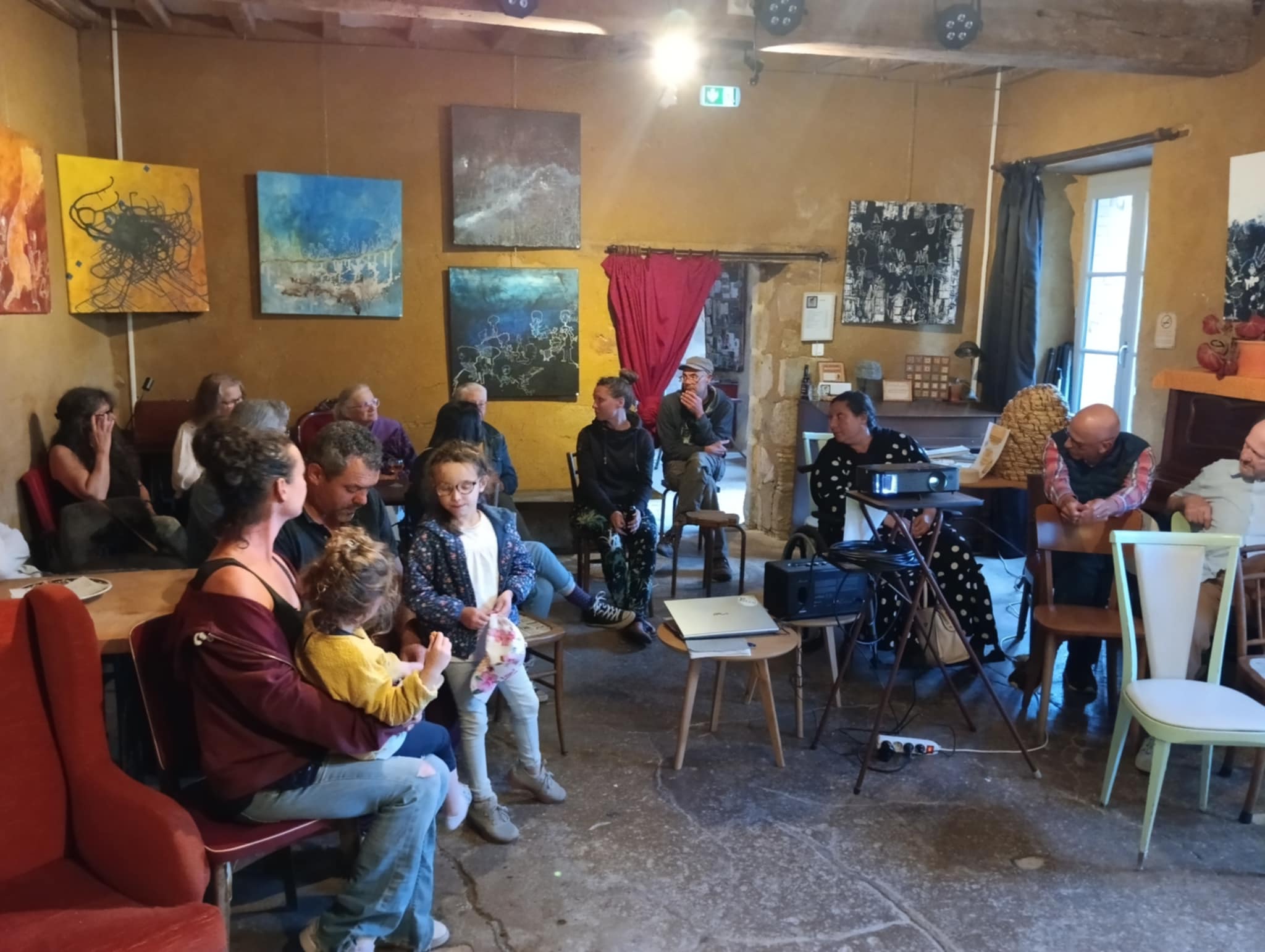 Quelques jours après la journée mondiale des abeilles, les 27 personnes présentes ont été captivées par la beauté et la précision des images de ce film qui nous immerge dans l'univers minuscule d'une ruche tronc en pays cévenol...L'assemblée étant diverses: enfants, passionnées, apiculteurs amateurs..les échanges ont permis d'aborder le large éventail des insectes pollinisateurs et se sont poursuivis sur les liens fondamentaux entre insectes, plantes, santé humaine et environnementale... La poésie des abeilles nous émerveille et, en même temps, nous éveille à nos propres responsabilités face à l'urgence climatique et aux nécessités d'adaptation à venir... Le rucher école des colporteurs est un des ces espaces où ces questions se discutent et se mettent en actions !