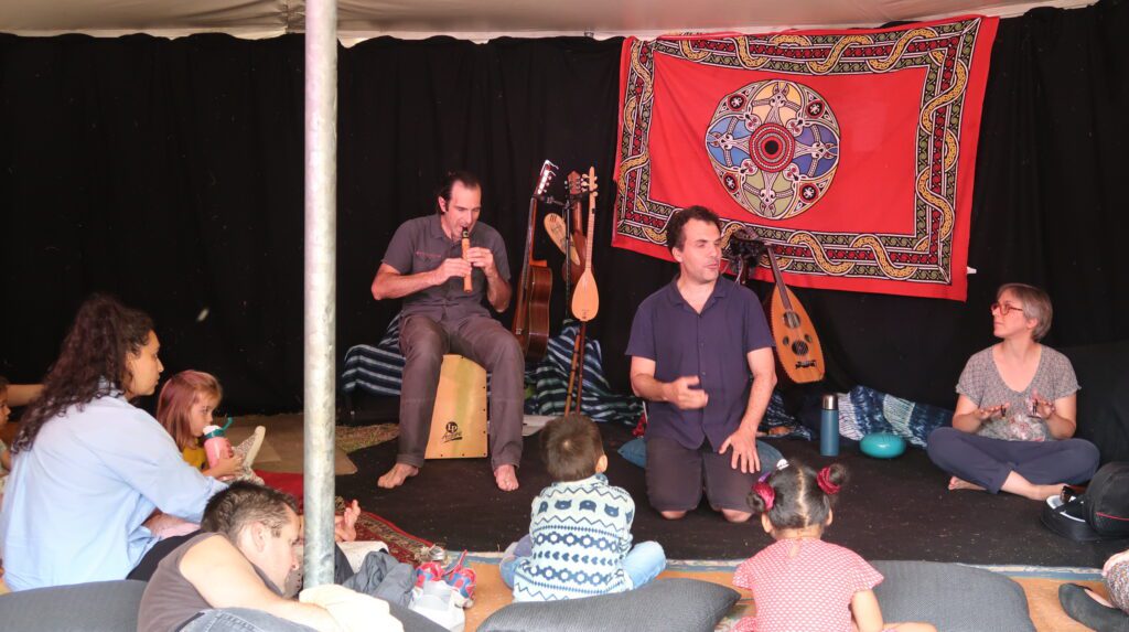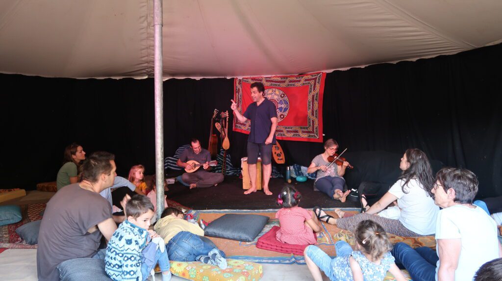 Luciole & Grillon sont passés au château pour poser la Linotte, leur chapiteau ! Toute la semaine nous avons voyagé avec 4 rdv à l'Heure du Conte à 16h du lundi 21 au jeudi 24 juillet. Ils sont également présents pour un concert de musiques et chants du monde ce jeudi 24 juillet à 21h à l'occasion de la Guinchouette.