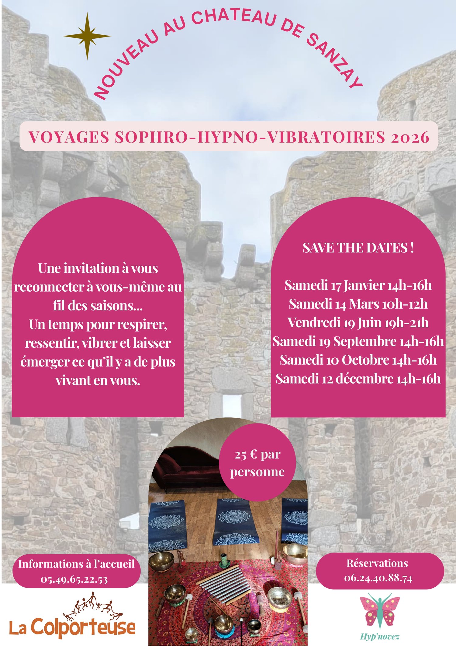 Une invitation à vous reconnecter à vous même au fil des saisons...Un temps pour respirer, ressentir, vibrer et laisser émerger ce qu'il y a de plus vivant en vous. Christelle Bibard d 'Hypnovez vous propose 6 dates en 2026 : samedi 17.01 (14h-16h), samedi 14.03 (10h-12h), vendredi 19.06 (19h-21h), samedi 19.09 (14h-16h), samedi 10.10 (14h-16h), samedi 12.12 (14h-16h).