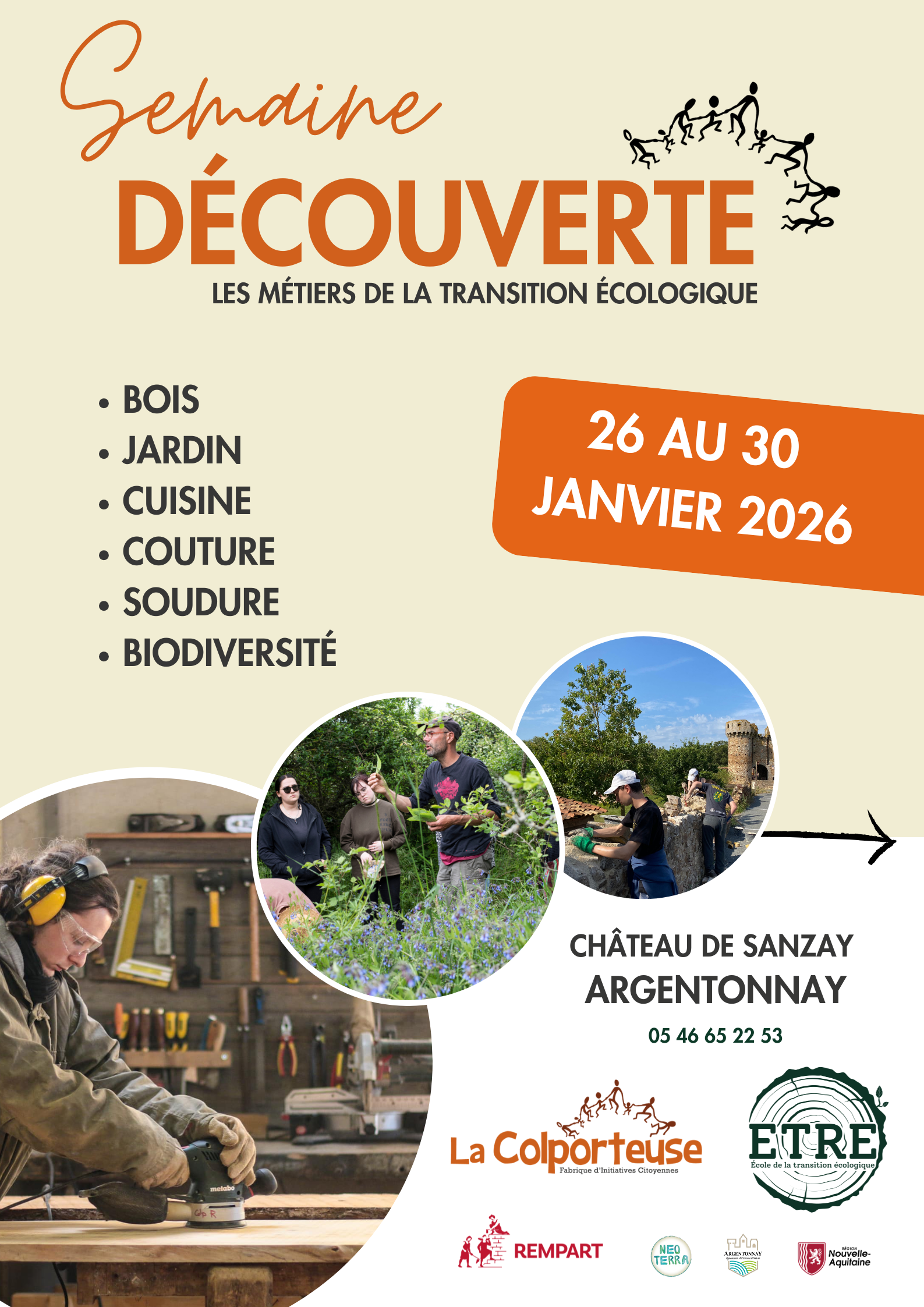 Les formations Découvertes proposent une semaine d’ateliers, de chantiers et de découvertes des métiers de la transition écologique expérimentés à la Colporteuse.